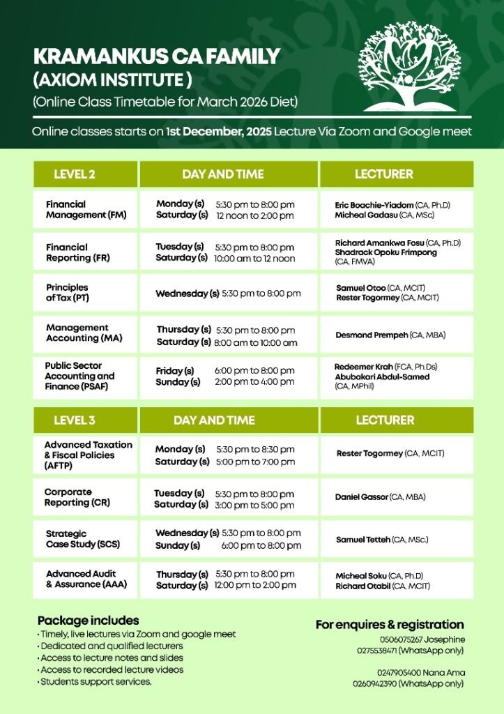 Join Axiom Institute, formerly known as Kramankus, a licensed ICAG tuition provider dedicated to transforming aspiring accountants into qualified professionals. With expert lecturers, flexible online learning, and comprehensive exam preparation, your CA journey starts here.